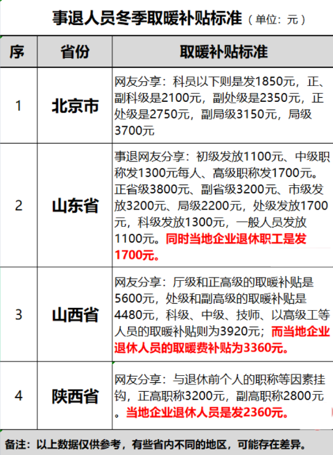从这张表中可以看出,这些退休人员可能是山西省的企业退休人员,他们的取暖补贴正好是3360元。也许这些退休人员是今年刚退休的人,不了解取暖补贴的历史,所以,造成了美丽的误会。