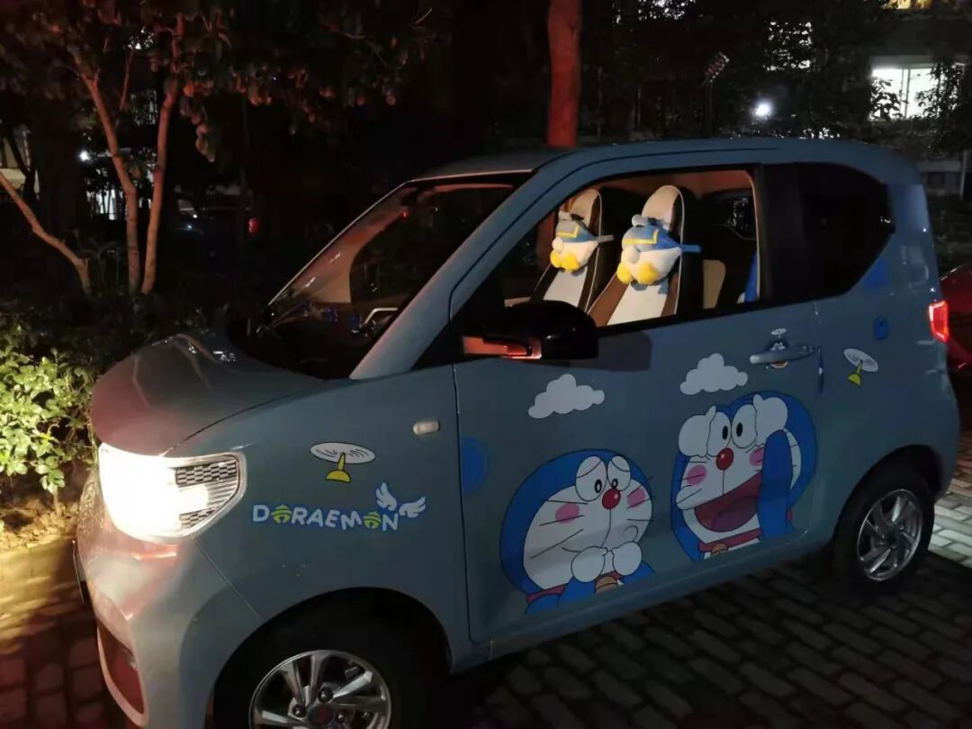 关于五菱宏光,之前有个段子广为流传:“昨天我在秋名山,输给了一辆五菱宏光,他会用惯性漂移过弯,他的车很快,我只看到车后面有个专修楼房漏水的招牌,如果你们知道他是谁的话,麻烦跟他说一声,周五晚上7点,秋名山见!”而杭州萧山的高速路上,如今也经常飙过一台贴着哆啦A梦的宏光mini,那是杭州女孩钟雅佳的爱车,“运动模式最快可以开到100码,高速上会有点飘——这事你别告诉我爸。”她刚工作不久,宏光mini是她收过最贵的生日礼物。钟雅佳上班的地方位于杭州城区,离家有20多公里,本想借此机会搬出去住,但父亲不同意,就给她买了这辆车。在杭州,燃油车牌需要摇号,且按号限行,新能源车的绿牌就没有这样的问题,问题只有,“建议你胆子小的话,下雨天风大别上高速。