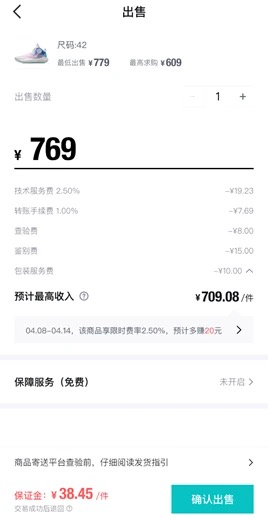 ▲ 在得物上出售一件商品,需要扣除若干费用。图 / 受访者供图