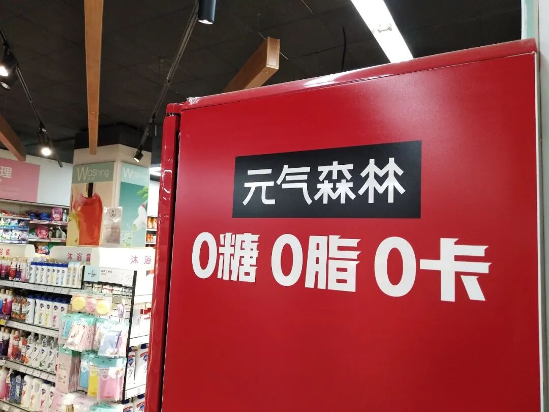 ▲ 元气森林展示柜,宣传0糖0脂0卡。图 / cfp
