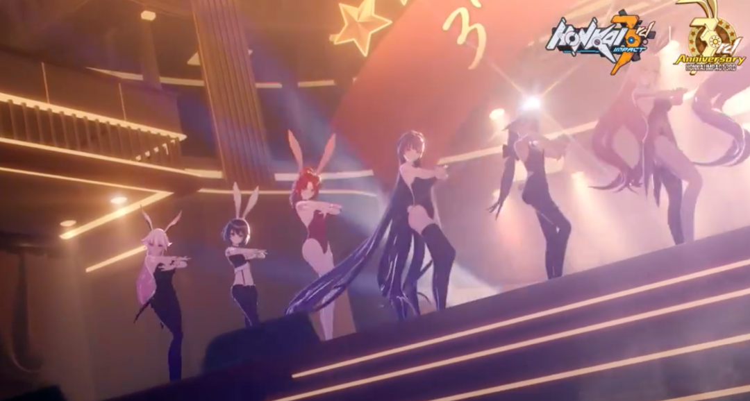 ▲ 《崩坏3》国际服周年庆活动,女武神等角色换上兔女郎服装唱跳。图 / 网络