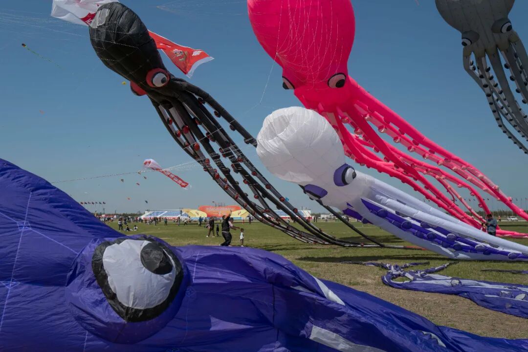 在潍坊,人们通过放飞风筝获得快乐。飞起来的是风筝,也是他们自己。