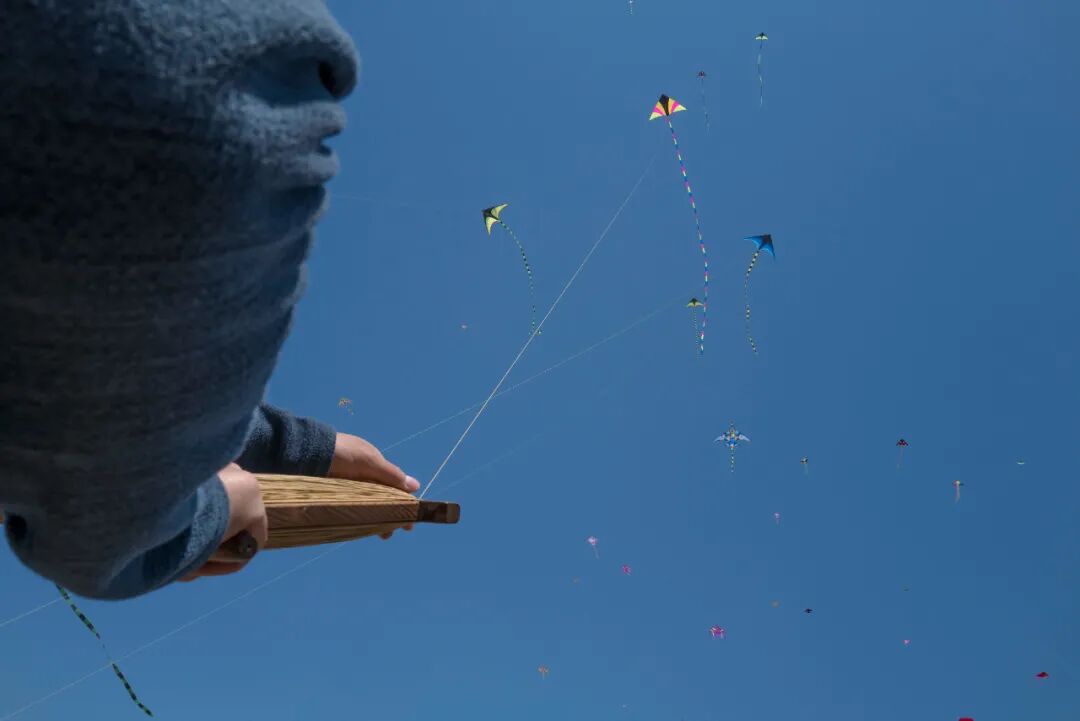 每个人放风筝时状态都不同。放风筝的孩子几乎都以快乐为主,而放风筝的成年人的感情色彩更加丰富。区别于老魏沉着冷静的风格,从四川成都赶过来的周明是个火热性格,他放的是一个滚地龙风筝,放飞的时候他像在跑短跑一样,来回检查线是否紧了,钢扣是否松了,从这一头跑到那一头。“放风筝没个激情放个鸡毛啊。”他边跑边指挥,“来来来,一鼓作气,拉绳子!”