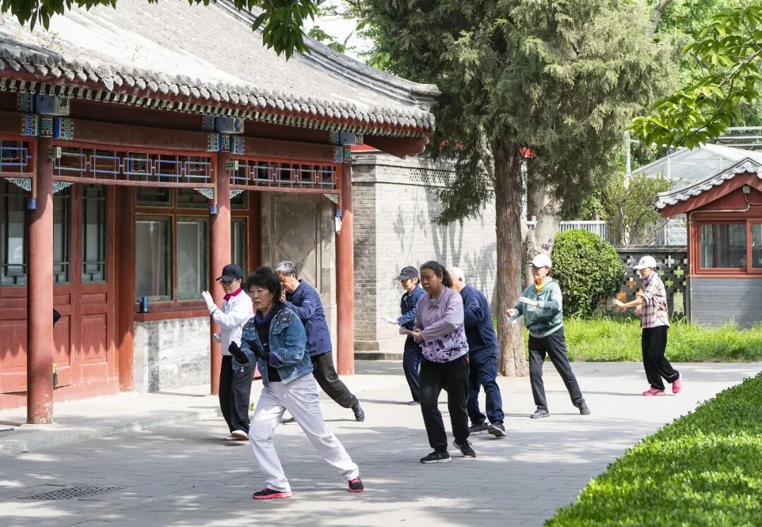 ▲ 在景山公园内晨练的老年人。图 / cfp