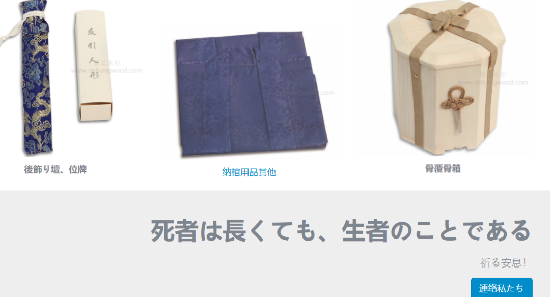▲ 位于曹县的一家棺材厂,官网上的文案使用日语注明。图 / 网站截图