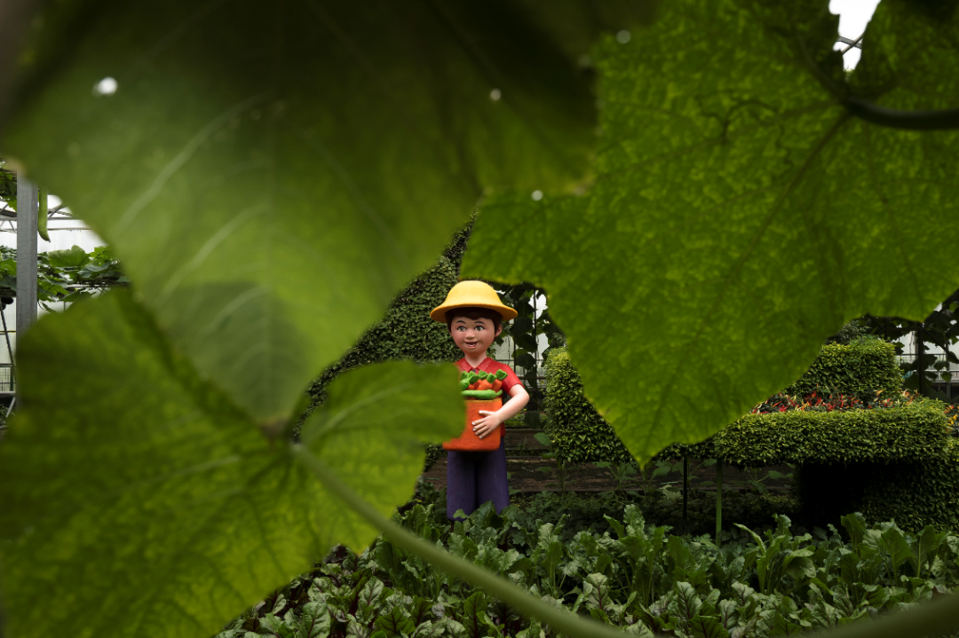 中国蔬菜看山东,山东蔬菜看寿光,这些年来,寿光一直以蔬菜之乡闻名遐迩,不仅我国北方80%的餐桌,韩国的泡菜也指望着寿光的白菜和萝卜。中国(寿光)国际蔬菜科技博览会(以下简称“菜博会”)正是寿光蔬菜产业的缩影和精华。今年,整个菜博会的占地面积是45万平方米,相当于63个标准足球场,与21年前的首届菜博会相比,规模扩大了几十倍。站在门口看过去,视野开阔,各类施肥机、播种机、鼓风机摆放在广场上,像是开足了马力,等着带你走进这场属于蔬菜届的巴黎时装周。场馆是温室大棚,五一前后,去参观的人多,既炎热也热闹,网红打卡、主播直播的景象也成了今年的新惊喜,不出三步,你就能轻松挤进老铁的镜头,跟蔬菜们一起小火一把。无数吃饱了肚子的人们在这里记录,因为蔬菜在这里,不仅是生活必需品,还能整出艺术感。坊间一直有“山东济南、中国青岛、世界潍坊,宇宙寿光”的戏谑,来到这里,我对寿光确实产生新的认知。毕竟,看到冰柜那么大的南瓜、长臂猿的手臂那么长的黄瓜,还有一棵能结出3吨西红柿的树……谁看了不想喊一句,“菜博,朋克”呢?