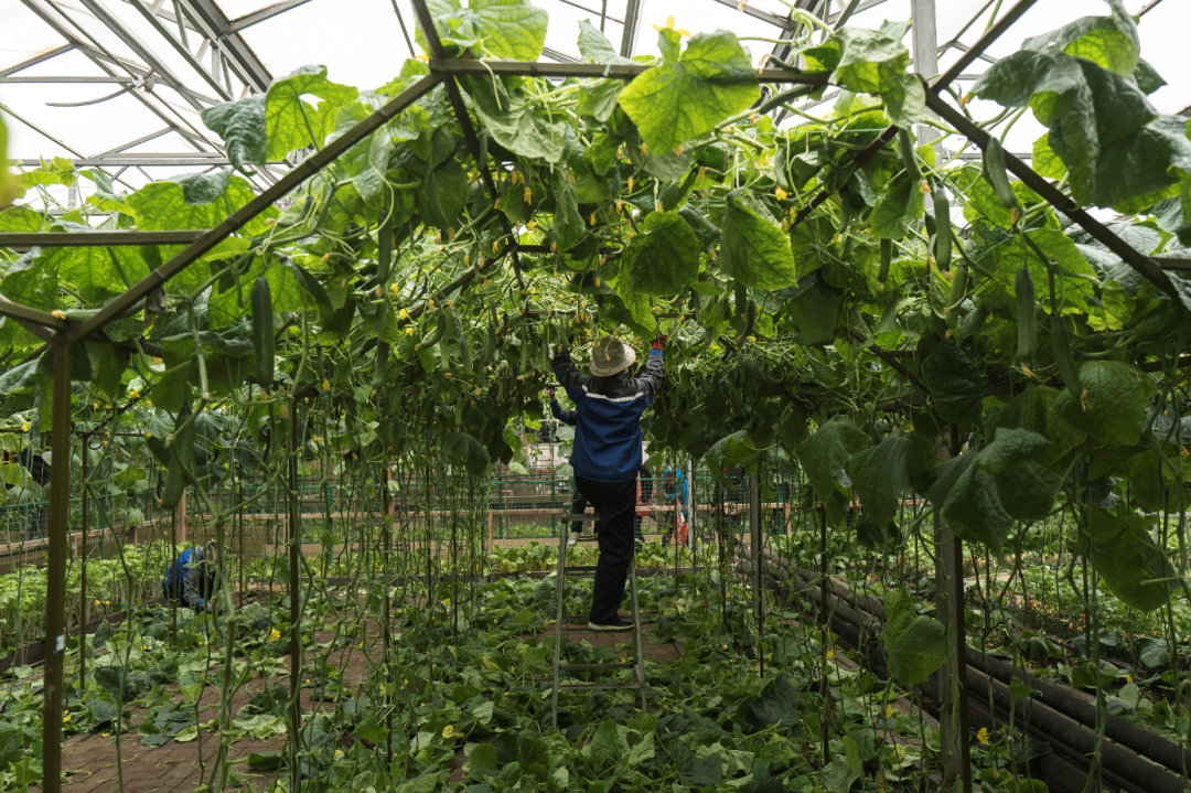 ▲ 正在照顾蔬菜的工作人员。图 / 尹夕远 摄