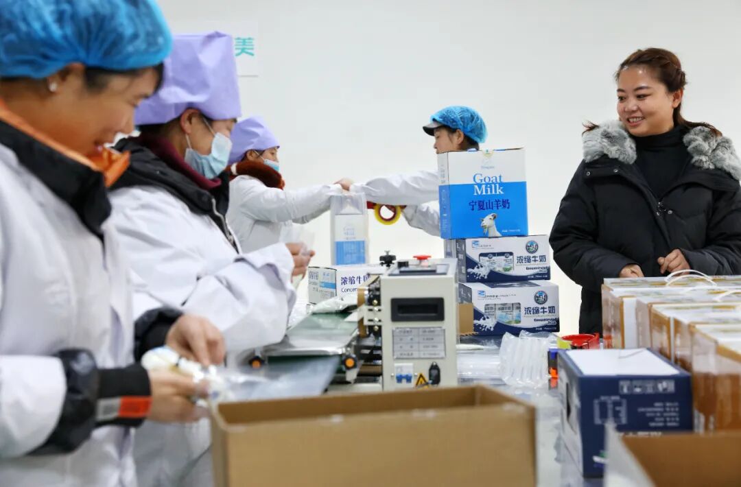 ▲目前,电商扶贫车间的主要收入来自供应链,依托电商平台,向全国销售枸杞、干果、牛奶等各类宁夏土特产,借助消费扶贫周,依托拼多多开设官方旗舰店,开始建设“闽宁禾美”这一消费扶贫品牌。图 / 顺子