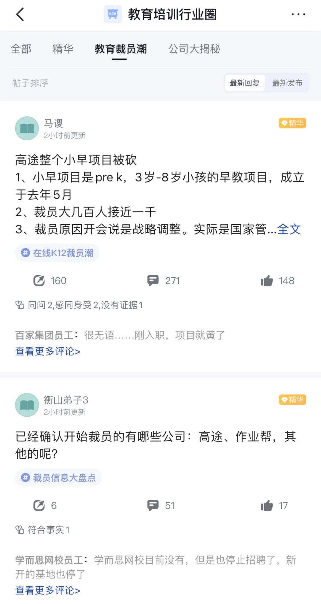 ▲ 教育培训行业圈里讨论裁员潮。图 / 脉脉