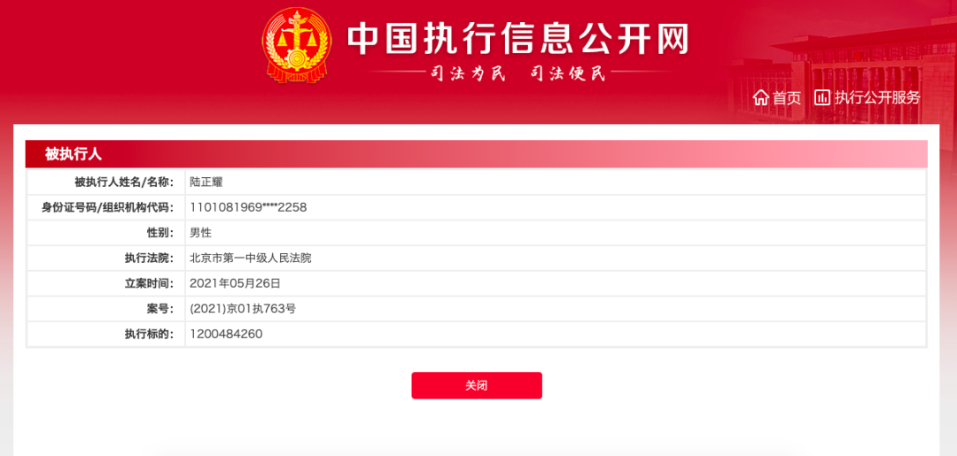 这是陆正耀近半年来第三次登上被强制执行人名单。前两次分别是今年的1月和3月,被执行金额是13亿和9亿。1月那次,他还收获了一张“限制消费令”, 连G字头的高铁都坐不了。