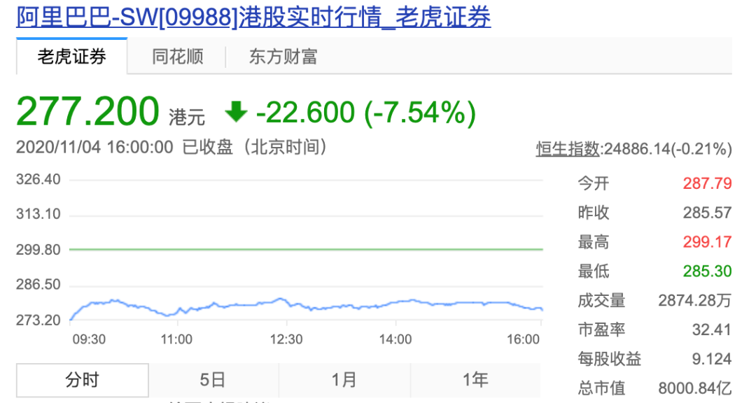 但看着蚂蚁暂停IPO的消息,他突然想到,阿里巴巴的市值肯定会因为蚂蚁受到波及,甚至下跌。当他看到阿里股价跌了9个点后,他立刻决定抄底买股。285美金买进,买的不多,只买了3股。对他来说,这不是属于打新失败的夜晚,而是抄底成功的夜晚。