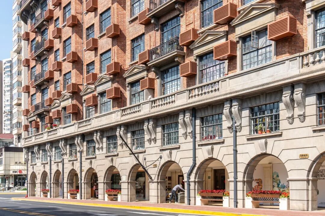 秋日上海的武康大厦外面,梧桐叶斜影成片,大楼外部尽是法式风情,有刻着螺旋花纹的“牛腿”造型和三角形的古典山花窗楣。大楼一、二层是商铺,一层设计成老欧洲的骑楼样式,十五根3米粗的拱柱支撑着楼体,让出底楼两米宽的楼内走廊。