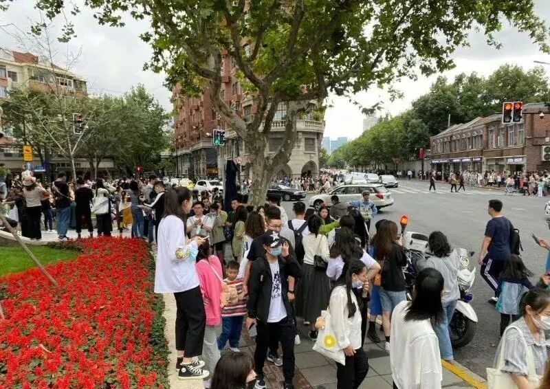 ▲ 武康大楼附近,永远挤满了慕名前来打卡的游客。图 / 新浪微博 @解放日报