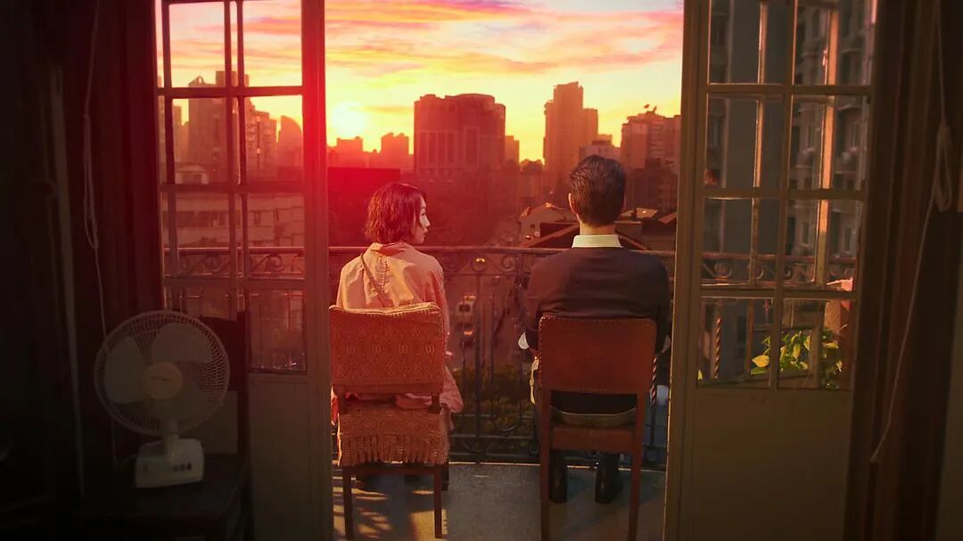 ▲ 武康大楼的许多房间都附送很大的阳台,电影中,周冬雨和金城武就是坐在这样的阳台上看夕阳。图 / 电影《喜欢你》