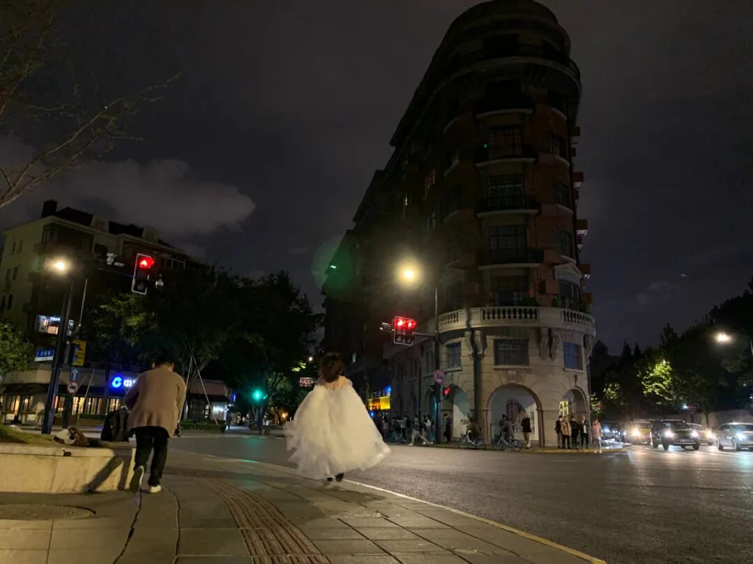 10月15日凌晨0点15分,一个拍婚纱照的女孩,提着裙子,在武康路上反复跑了第八遍,摄影师终于露出了满意的笑容。她是今天最后一个来这里拍照的人,在这之后,车流和人流都渐渐消失,六岔路口,只剩下风,和不再被人层层围住的、安静的武康大楼。