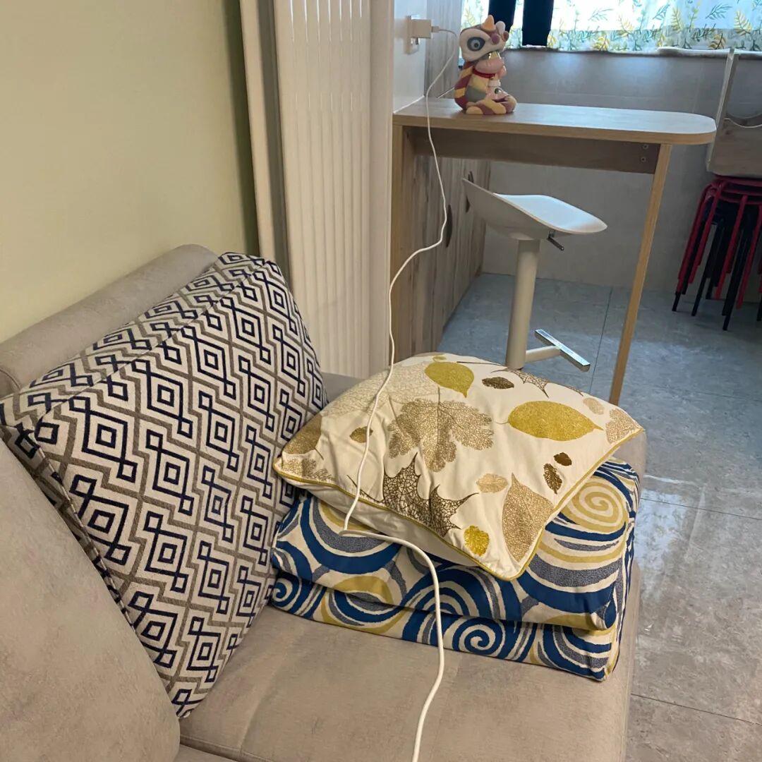 那会儿北京暖气已经来了,但我还嫌不够暖和,斥巨资购入了一整套日式被炉,就为了满足“钻进去一边喝茶一边吃小橘子”的小丸子式梦想。光有被炉还不够,可以调节角度的懒人椅也得配上,90度就是假装工作,180度就是躺平摸鱼,共有5种档位任君挑选。