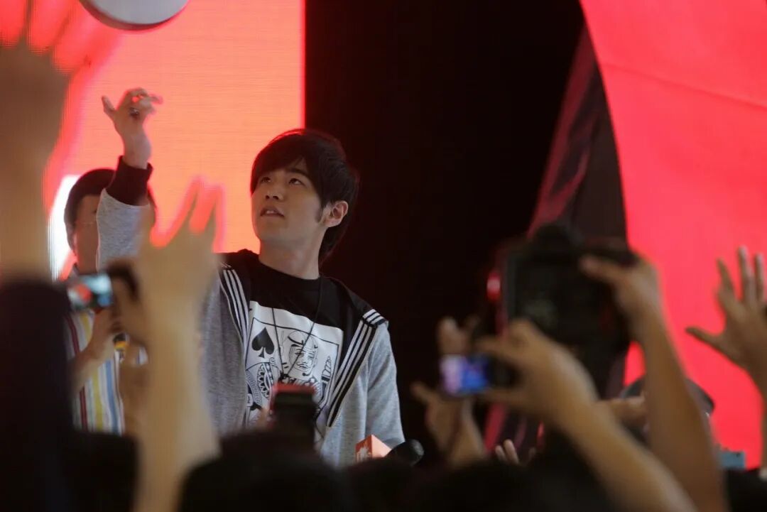 ▲ 2008年5月,周杰伦在德尔惠代言活动上。图 / 视觉中国