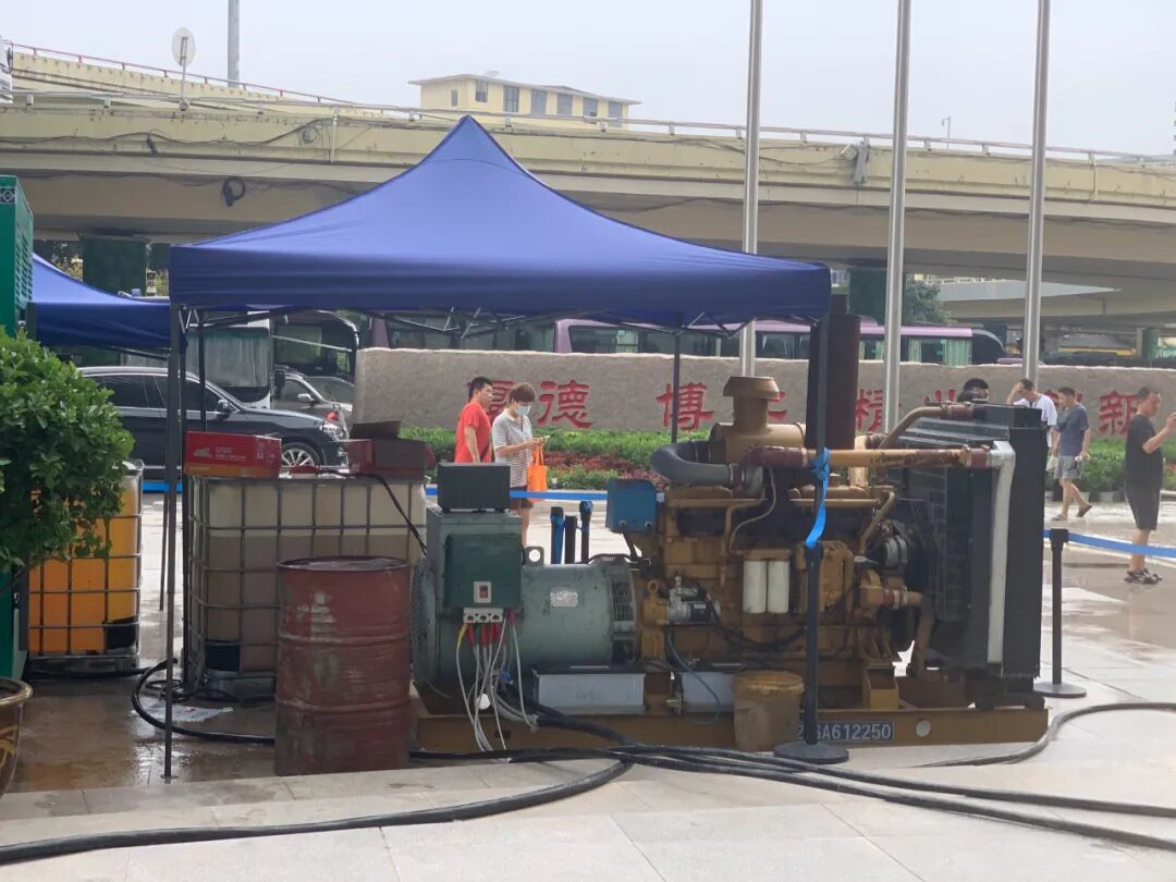 赶到郑大一附院救援的还有中建三局。一位中建三局员工告诉每日人物,晚上接到通知后,他们带着柴油发电机及需要的柴油、手电筒还有一些充电宝,赶往郑大一附院排水和恢复电力系统。2点多,设备集结完毕,因为一路上特别难走,赶到医院时已经三四点钟,他们一赶到,就先把柴油发电机拿到ICU接上电路,ICU开始缓慢地恢复供电。国网郑州供电公司也紧急调用了应急发电车来到郑大一附院,在齐腰深的积水里,12名电力抢修队队员彻夜努力,放置了50余米电缆。