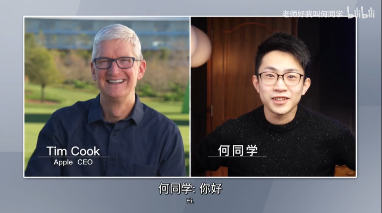 “老师好我叫何同学”再次上热搜,是在今年2月与苹果公司CEO蒂姆·库克的一次对谈。