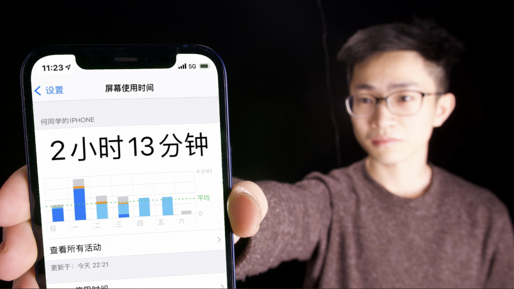 策划iPhone12 系列的选题时,他的核心创意是突出mini版的小巧轻便,希望可以像转笔一样让它在手指间晃荡。几天后这个灵感被否决,“(手机)还是有点儿大,没那个效果”。但他又发现,小屏幕手机好像会让日常使用时间变短,于是,这成为他后一期“戒手机”视频的灵感。