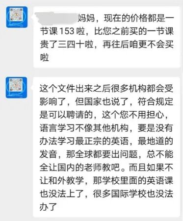 ▲ “双减”政策后,某教培机构的销售建议家长续课的话术。图 / 手机截图