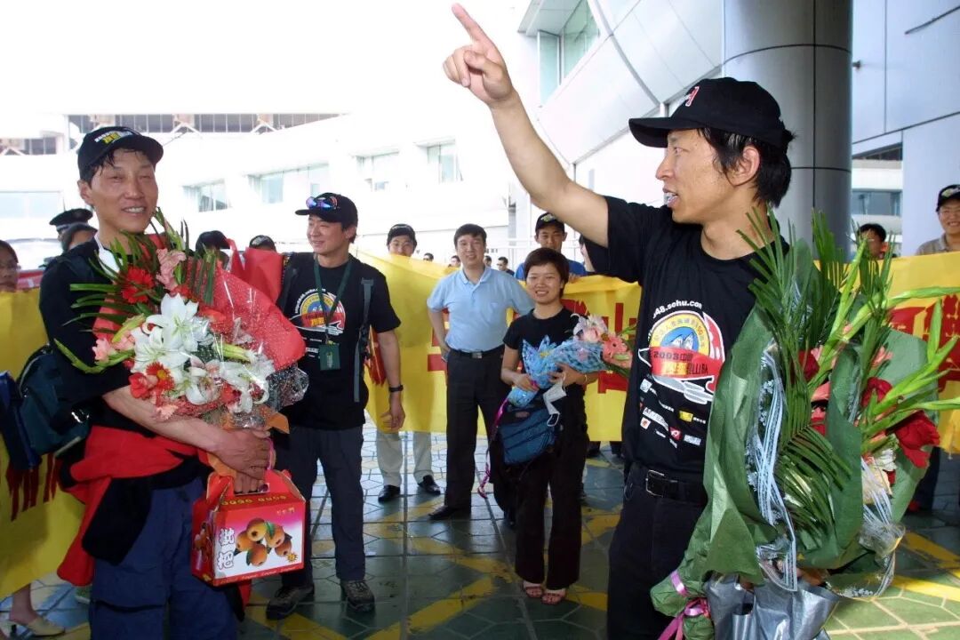 ▲ 从珠峰归来的张朝阳手捧鲜花抵达北京。图 / 视觉中国