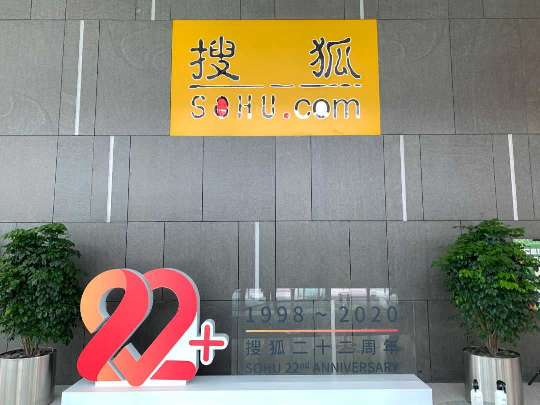 ▲ 搜狐媒体大厦门口,庆祝搜狐22周年的立牌。图 / 吕蓓卡 摄