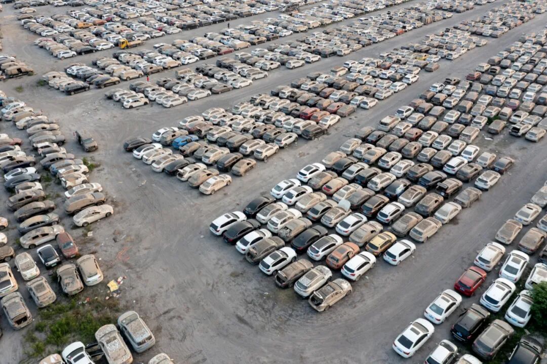 ▲ 郑州东区等待拍卖的泡水车停车场。