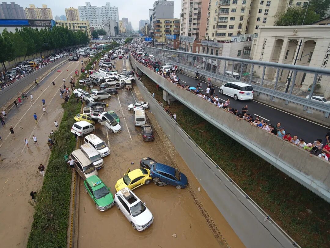 一家4S店被淹了,里面停了20多辆新车。一个叫绿洲银郡的小区,一辆奔驰车堵在了地库出口,车主回家了,大水灌进车库,后面的车全部被淹没,只有这辆奔驰幸免。一个叫瀚海晴宇的高档小区地下车库进水,200多辆车被淹,其中包括劳斯莱斯和宾利,雨后,车主们在业主群进行接龙统计后发现,该小区车辆损失已超1个亿。