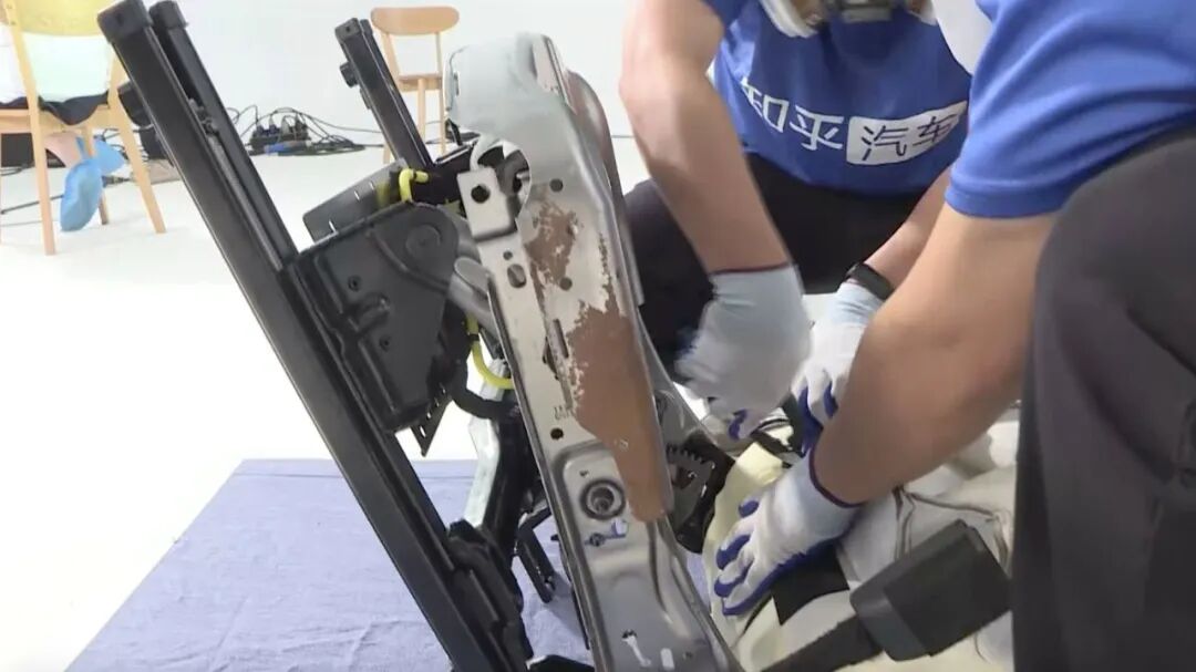 为了验证理想ONE其他车辆是否有水银,知乎“拆车实验室”拆了一辆2021款的理想ONE座椅,却发现座椅的铁质支架上存在大面积锈蚀痕迹——老款车的“水银门”,变成了新款车的“生锈门”。