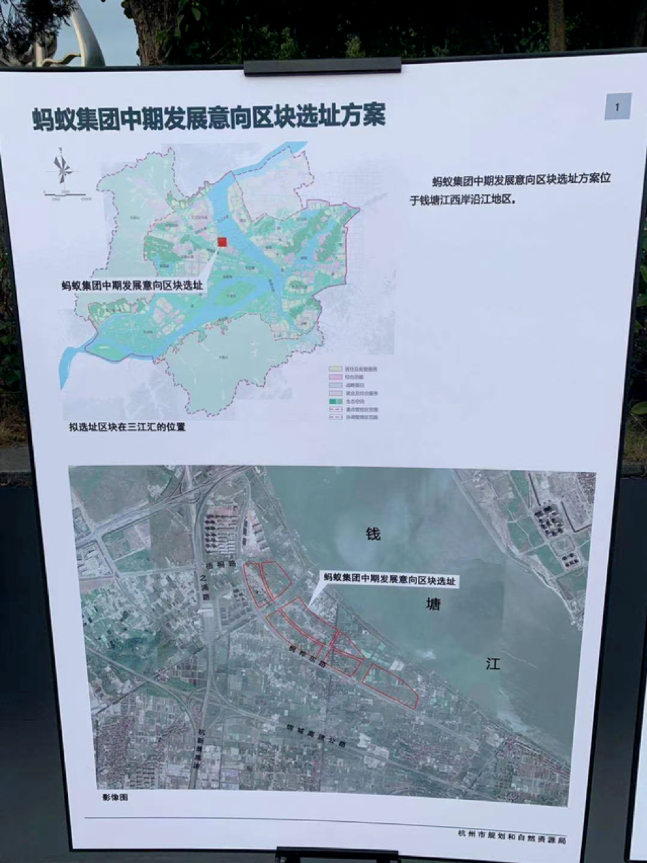 10月14日,蚂蚁集团正式宣布把总部建在杭州,尽管具体位置没公布,但网上已流传出一张“蚂蚁集团中期发展意向区块选址方案”的图。