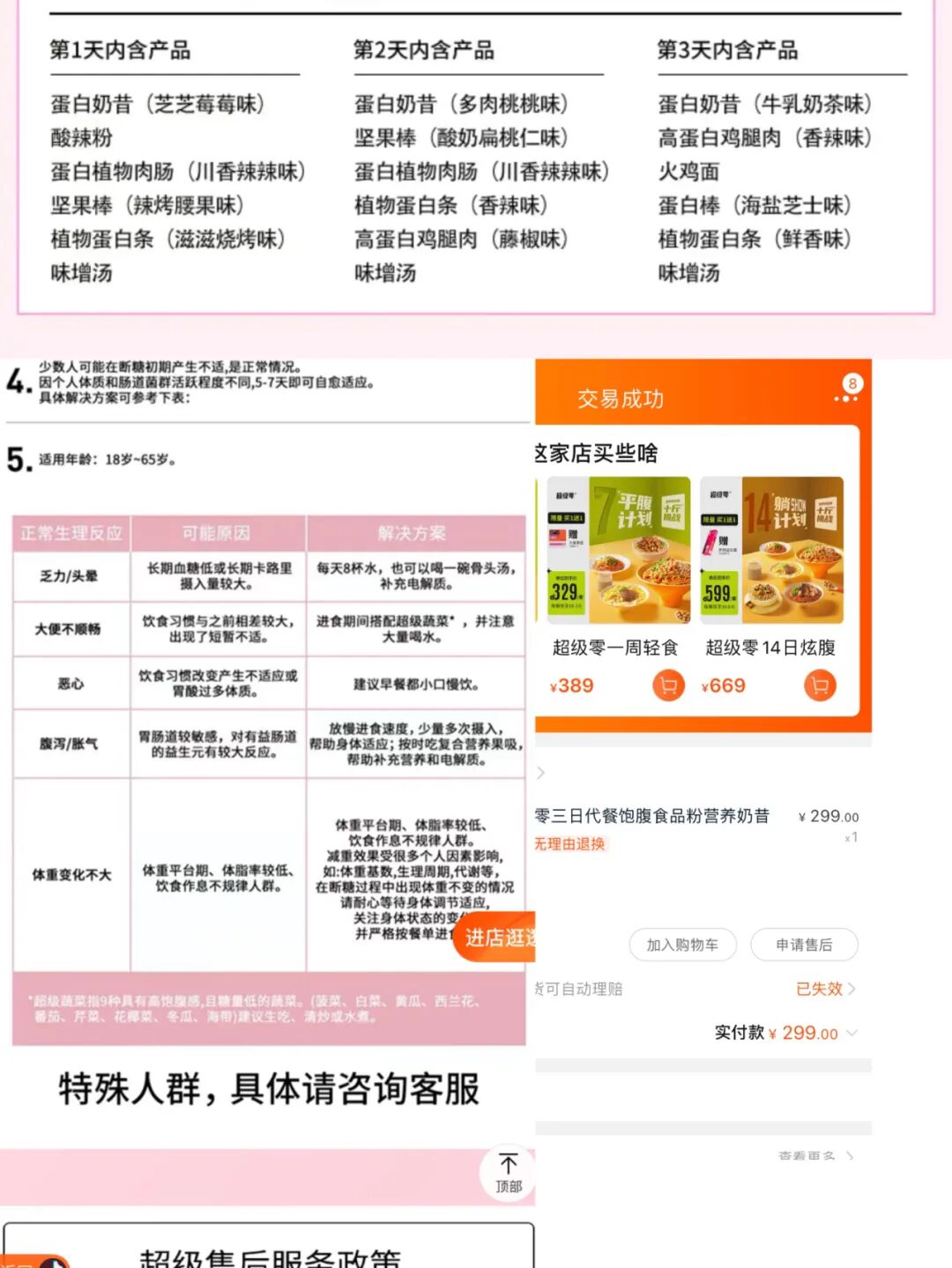 花过的智商税不计其数!但我觉得一定要避坑的是代餐!我当时172cm,120斤,想快速减肥又想健康,又想舒服一点,不用运动,买了一个三日代餐奶昔。结果证明哪有这么好的事,收到货吃了想吐,不是难吃,而是真的很难受!后来闺蜜也说吃了特别头晕,感觉像那种食材紧缺后研发的特殊食材。