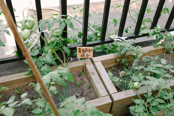 办公室里有一块8平方米的菜地,种了各种蔬菜,其中有一株快枯萎的菜秧,结出了一只小小的毛冬瓜。另一面的桌子下面,堆满了快递袋、透明的塑料袋和一兜一兜的瓶盖。中间的柱子上贴着几条标语:“摸鱼行为大赏”“此区域老板勿入”。最显眼的墙上,挂满了露营、爬山的合影。