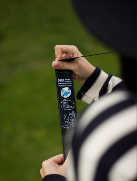 好瓶还找到了中国航天文创,在聊天中,好瓶发现,太空里也存在着很多垃圾,它们正在挤占太空轨道资源。如果什么都不做,总有一天人类对太空的探索会受到阻碍。于是,2019年底,好瓶的“太空包”被研发上市,这是一款用27个塑料瓶做成的产品,最独特的地方在于,这个限量款的包搭配了一条“太空腕带”,会有一块激光切割的火箭整流罩上的碎片被放在太空腕带里。