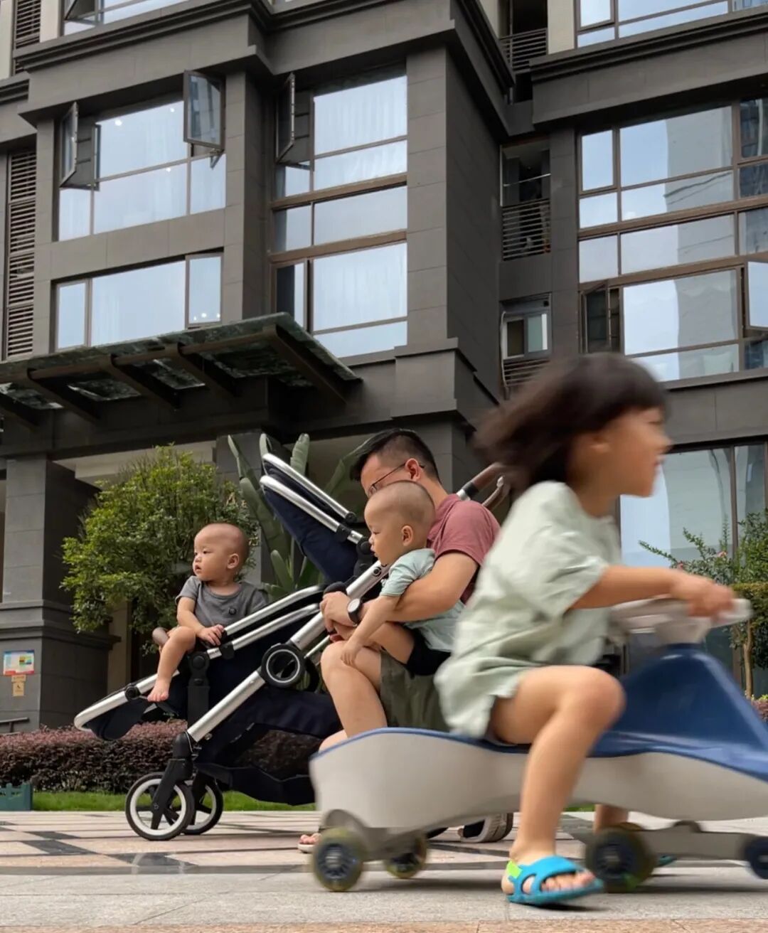 每次在小区里遛娃,人家看到我一男的带着三个,还都是男孩,总会议论几句:“好家伙,一个男孩一百万,你们家,三百万。”以后是不是要给每个孩子一百万买房,我持保留态度,但孩子的成长和养育,我觉得我绝不能错过。我妻子大学毕业没多久就生娃,生完老大又意外怀了双胞胎,三年来一直待在家里,生娃、养娃又生娃,一直在重复,后来她有点想逃离这种状态,也羡慕身边很多同龄朋友,还单身,精力都可以放在自己身上。她这种状况,其实我很理解,考虑到我之前的工作经历更丰富,将来回到职场能选择的余地也相对更多,所以双方商量后,决定妻子去工作,而我,开始当三个儿子的“全职奶爸”。为什么会做出我带三个孩子的决定,因为在我看来,孩子的前三年,父母的陪伴是非常重要的。我小时候父母离异,跟着妈妈长大,原生家庭对我的影响很大,我渴望有个家、成为好父亲,还有就是,我身边朋友们的经历,也促成了我的选择。
