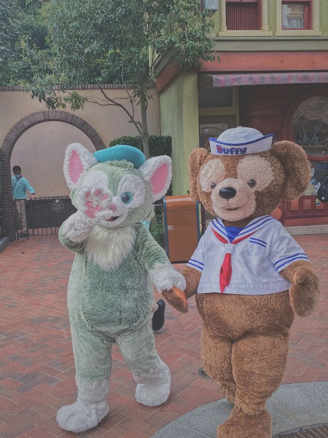 ▲ 迪士尼小熊达菲和画家猫杰拉多尼在和游园的人们问好。图 / 视觉中国