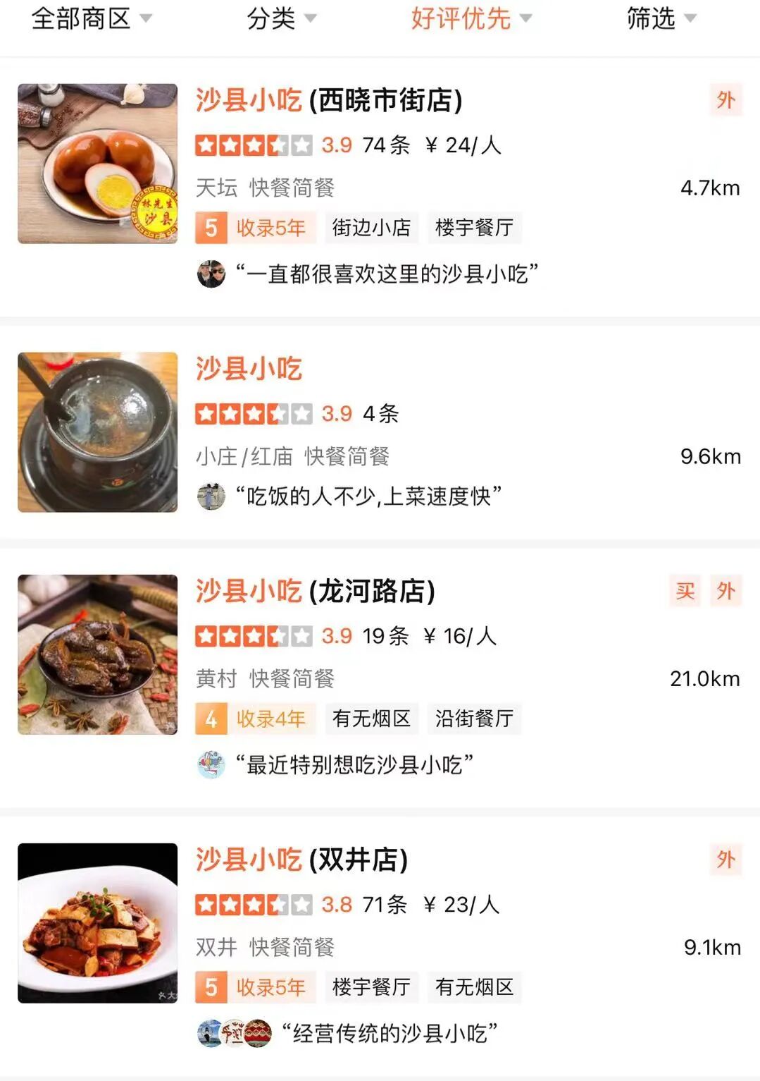 一个居住在一线城市的常见错觉:沙县小吃正在消失。这种直观的感受或许是真的。以北京为例,一共有近2000家沙县小吃,但点评网站上评分超过4分的店数量是0,单家门店点评数量最多的,也不过100来条——这至少可以说明,沙县小吃被一线城市里最喜欢发声的消费群体抛下了。