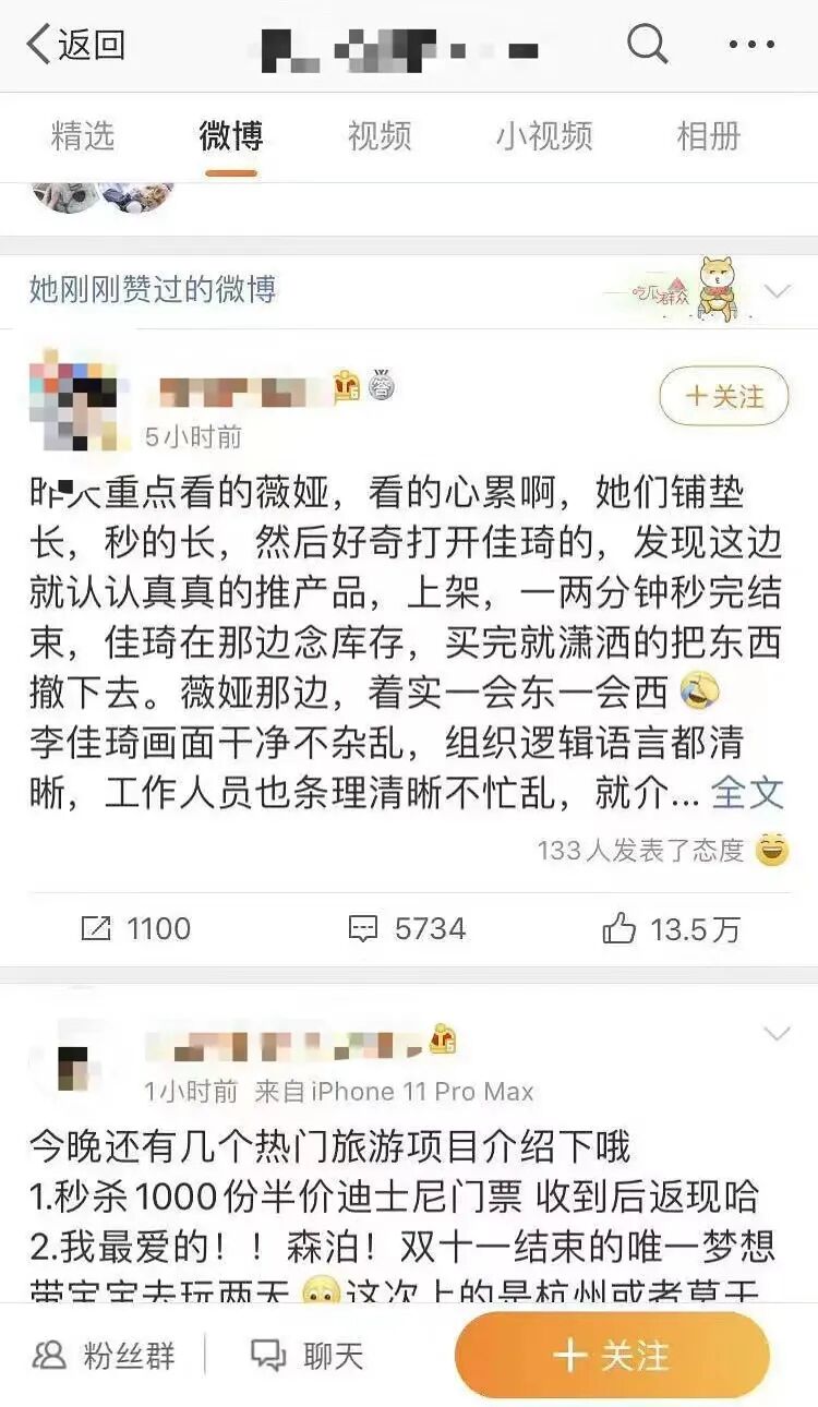 ▲ 雪梨小号点赞网友吐槽薇娅、李佳琦的微博。图 / 微博截图