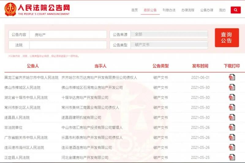 ▲ 多家房地产公司接连发布破产文书。图 / 网络