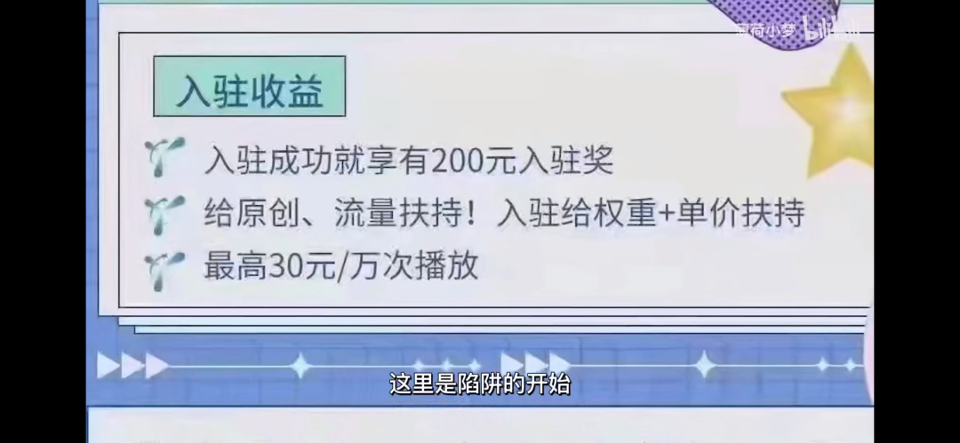 起因是11月8日,B站游戏科普类up主“薄荷小梦”发布的一则视频,标题简单粗暴——“千万别被腾讯黎明计划骗了”。据他讲述,一个自称腾讯合作拓展机构的人邀请他入驻企鹅号,多平台地推广视频内容,入驻成功后他将获得200元入驻奖励、原创标识和流量扶持,以及每一万播放量最高30元的收益。