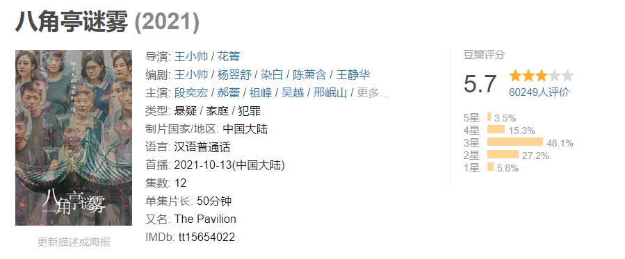 ▲ 图《八角亭迷雾》豆瓣评分。图 / 网络
