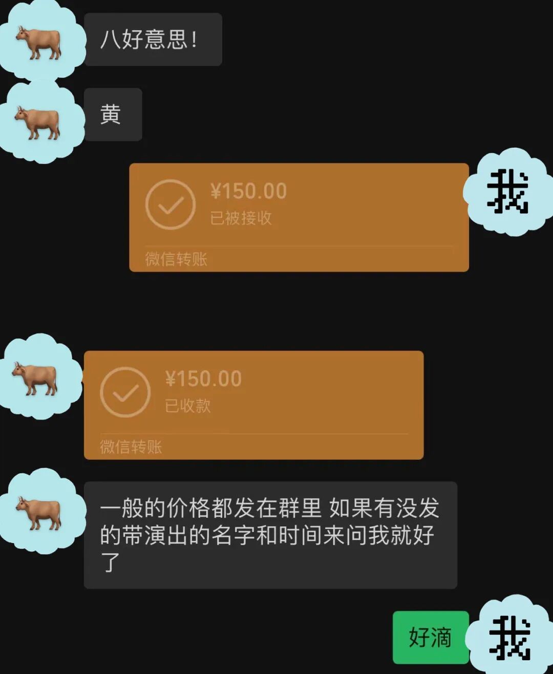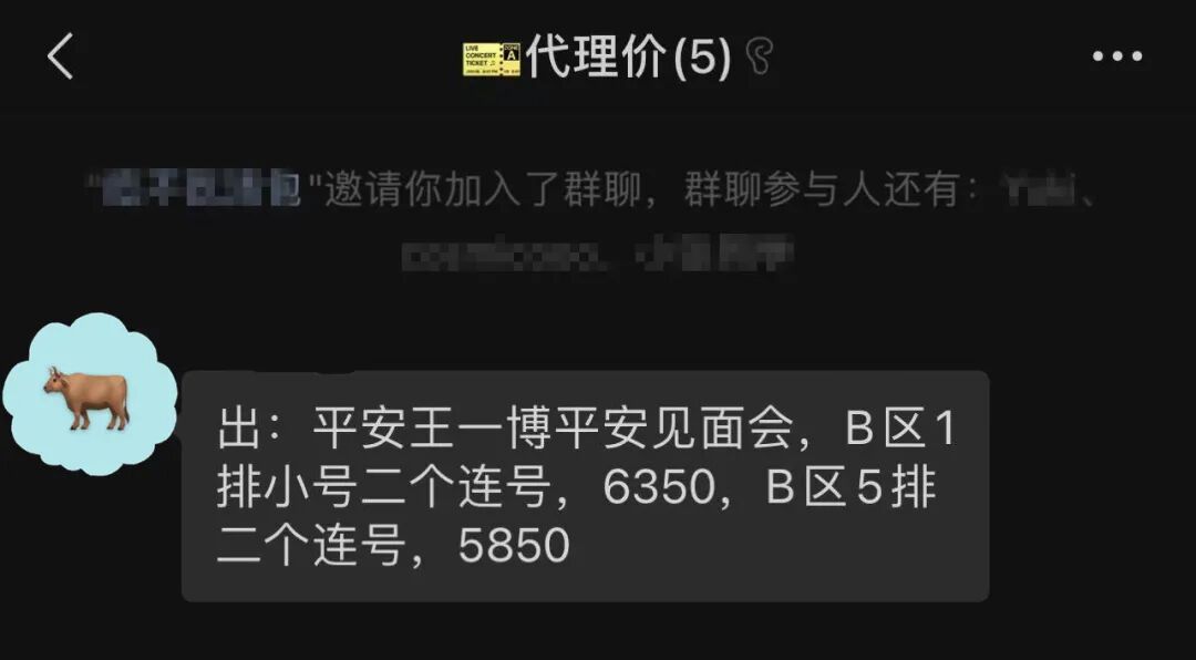 收钱后,这位一级市场黄牛表示自己太忙,等出完这拨票再来带我,随后便消失了。反倒是两位相对便宜的黄牛上线比较热情,交了钱直接把我拉进了所谓的“组织群”。