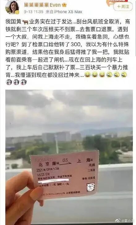 我转头质问刚才的黄牛为什么要价这么贵,他的回复有一丝不屑。