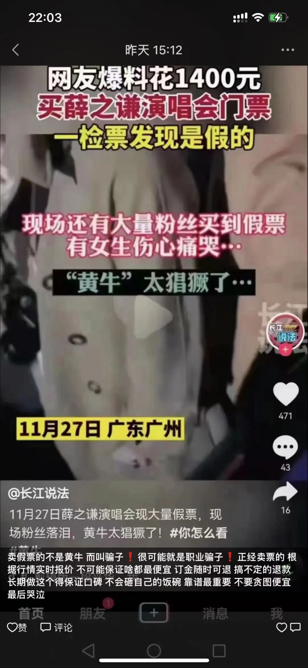 我又打开他的朋友圈划了划,发现他真的喜欢展示自己的“良心”。比如,他会在朋友圈发布视频截图控诉那些卖假票的假黄牛。
