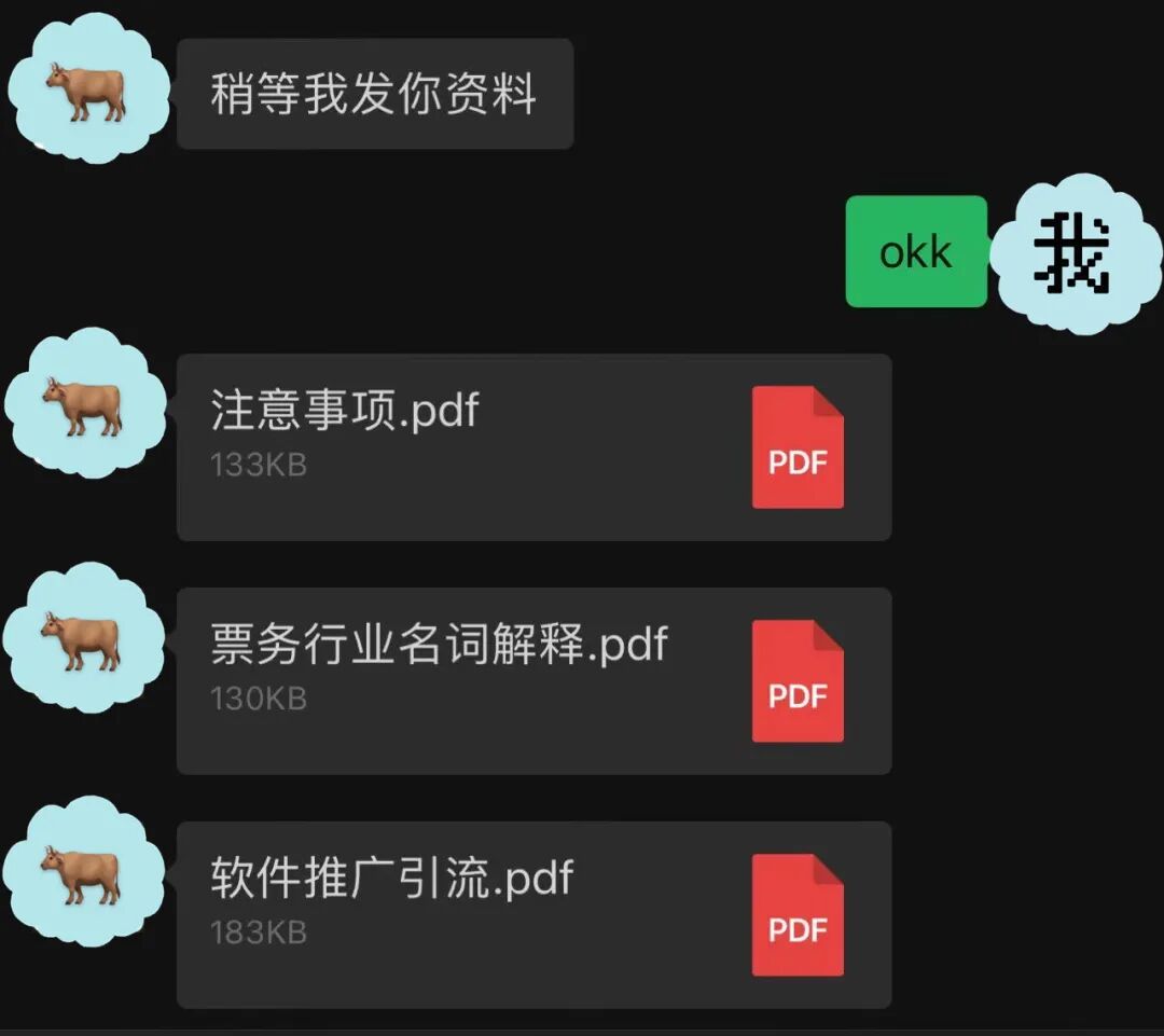 我本以为黄牛行业属于师傅领进门、修行在个人的类型,没想到两位上线分别给我私发了一拨“学习材料”,并开始对我进行岗前培训。