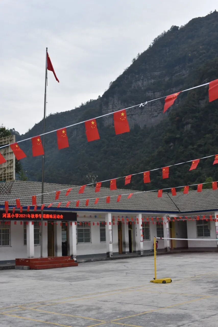 路带来了很多东西,水,电,建材,和来自拼多多的快递。相比从前简陋的校舍,现在河溪小学的教室是一排用砖和水泥砌的平房,水泥地面的操场上有篮球架和羽毛球网。