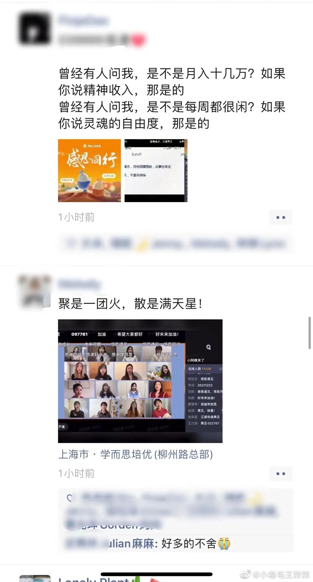 ▲ 许多好未来员工和家长在朋友圈发文告别。图 / 微博@小卷毛王炸炸