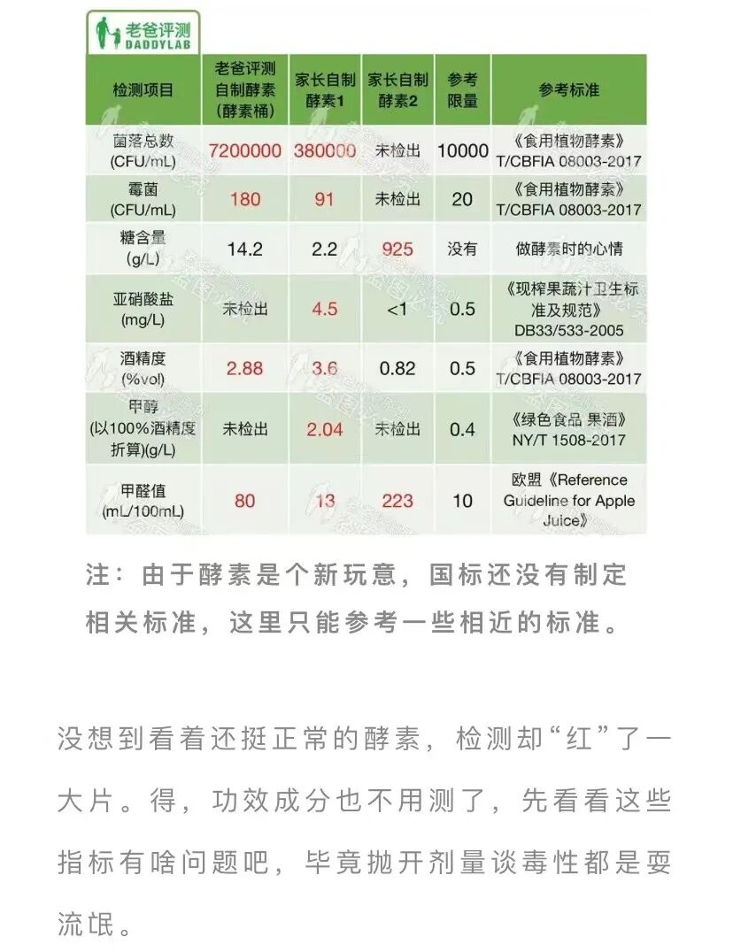 魏文锋团队则用检测起底了酵素桶。水果在桶内发酵四天后的检测结果显示,自制酵素能不能帮助减肥尚未可知,但细菌和霉菌数量却严重超标,还产生了甲醛。“原理就是泡菜水。”钟凯又补了一刀。