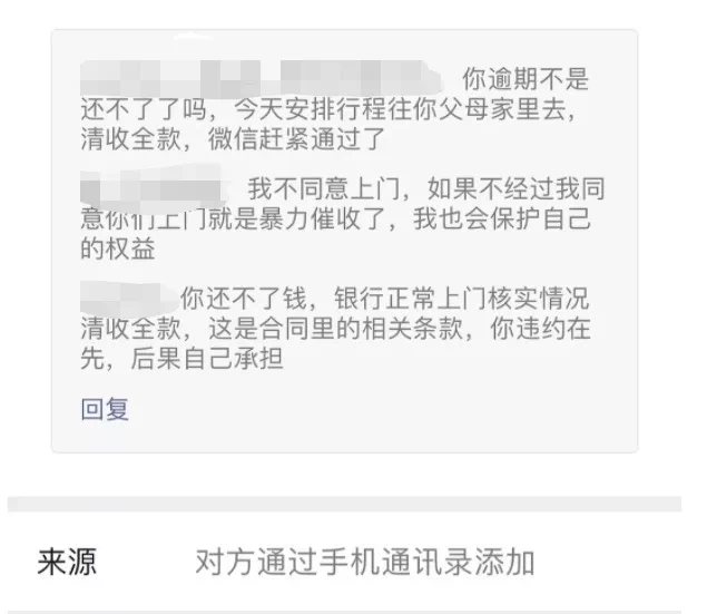 ▲ 催收的人与欠钱年轻人的聊天记录。图 / 豆瓣网友晒图