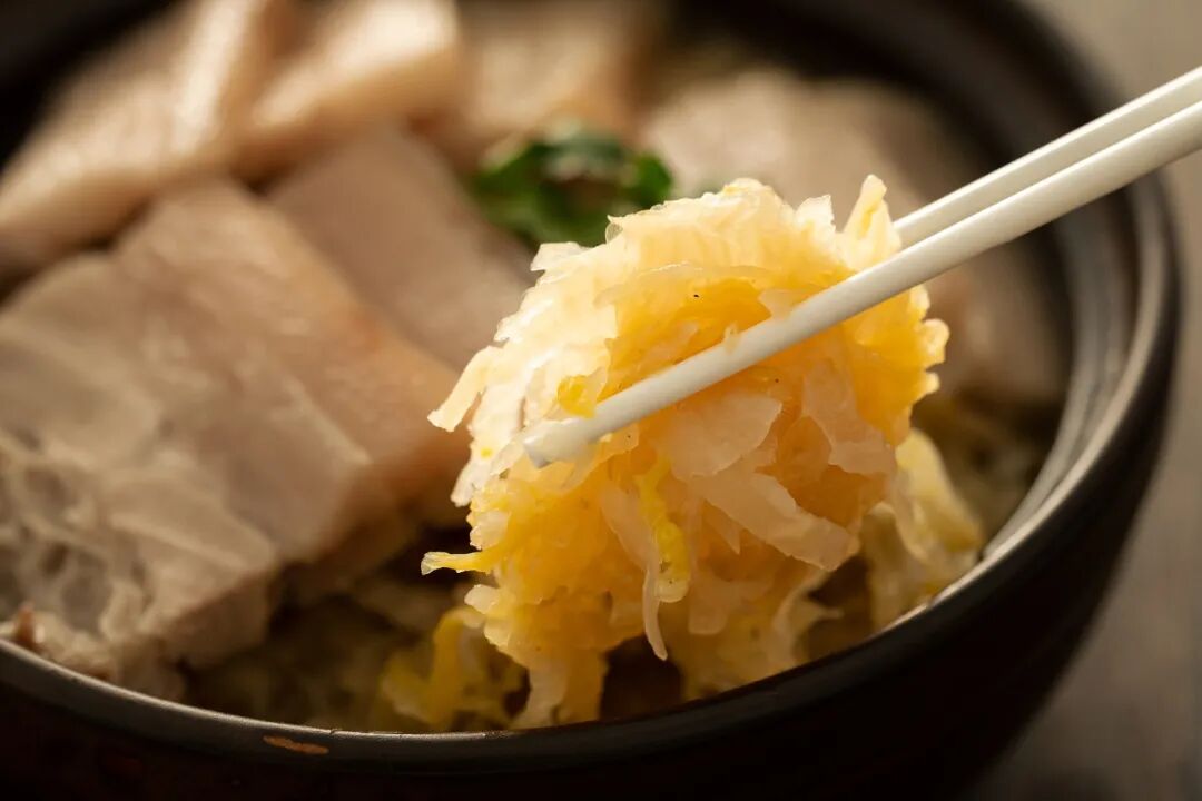 后来,酸菜缸渐渐被淘汰了,白菜直接切丝、浸盐,塞进罐子里密封,简单方便省地方,也足够过一把酸菜瘾。再后来,我长大了,离开了东北,吃过南方精致的点心,尝过川渝地道的火锅,但只有在路过东北菜馆的时候,才发现,身为东北人的胃里永远藏着一只叫“酸菜”的馋虫,这辈子,谁都别想喂饱它。